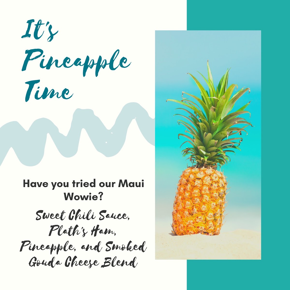 Sweet chili sauce, Plath's ham, pineapple & smoked gouda cheese blend